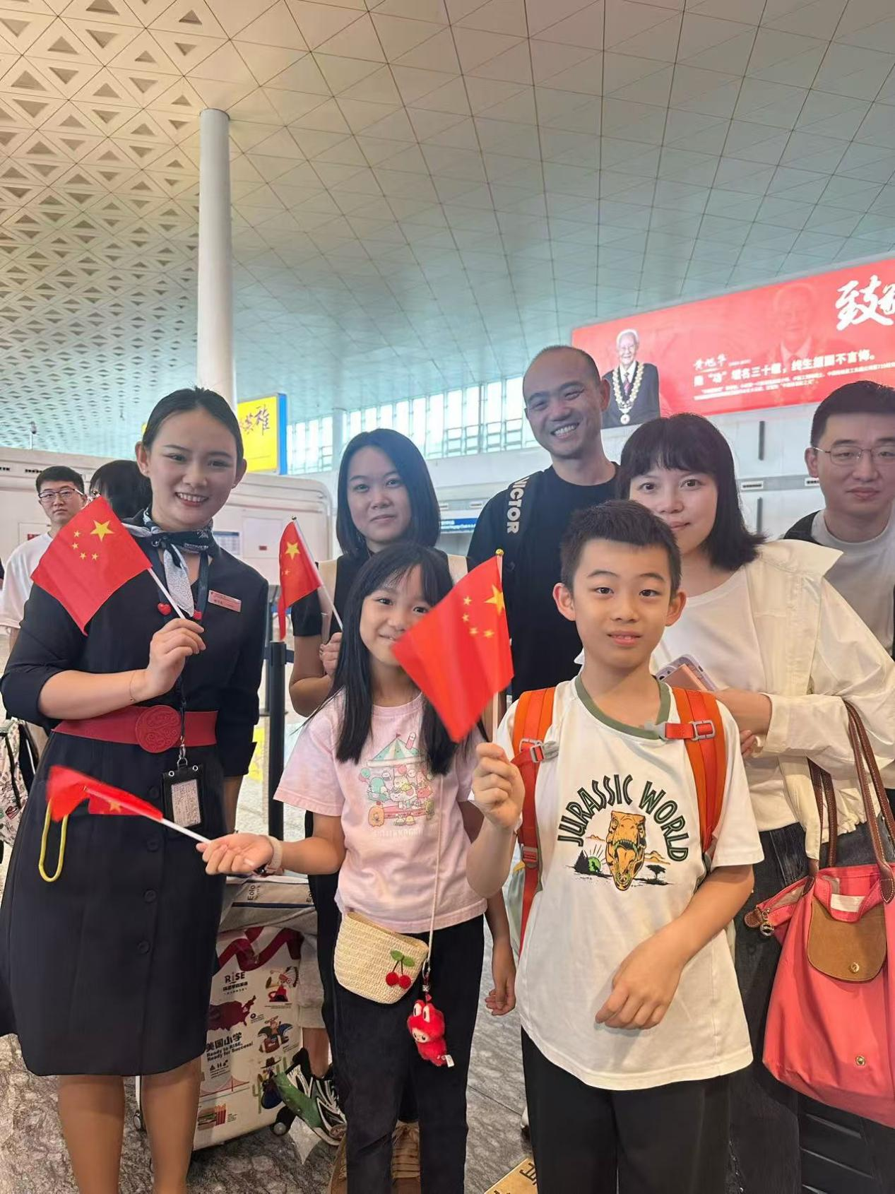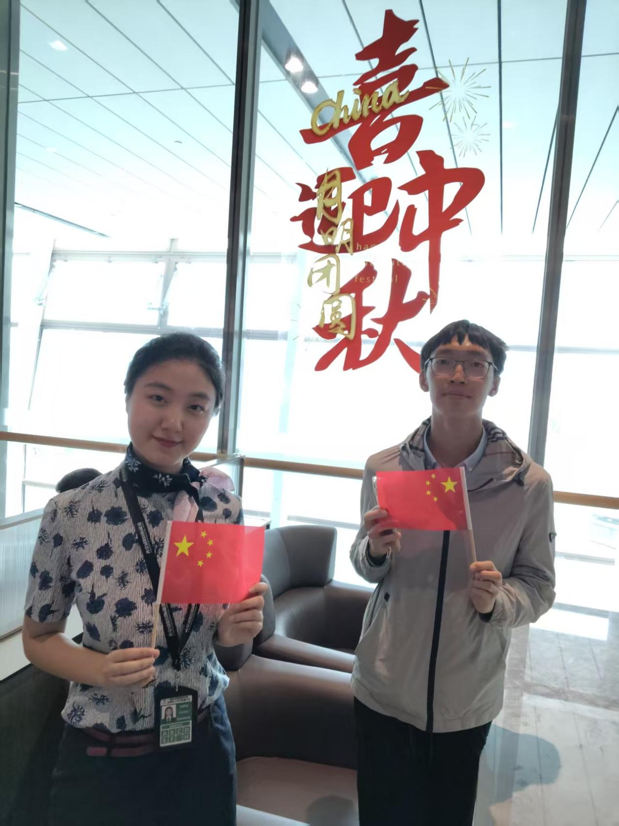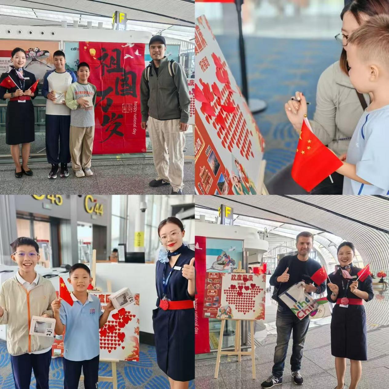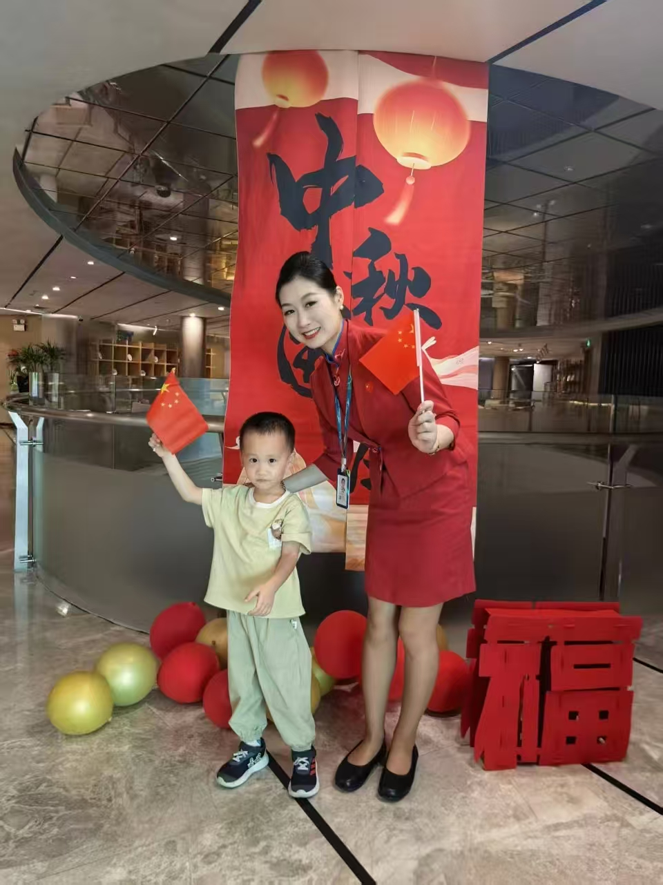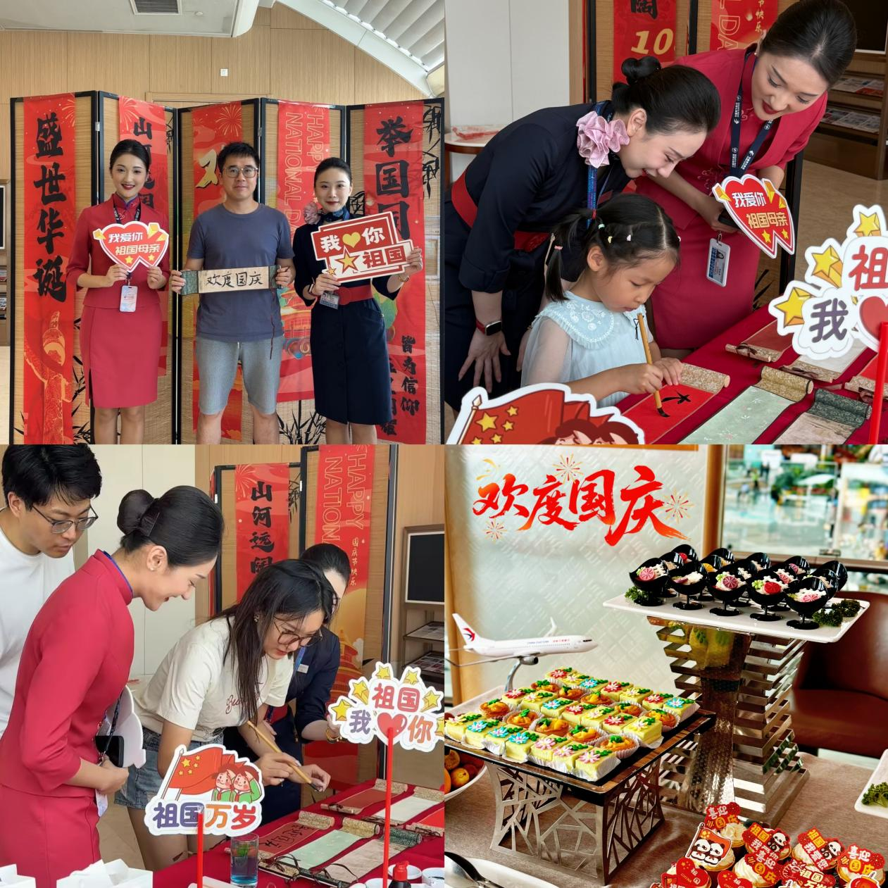 国庆节当天,东航北京分公司精心策划并开展了一场特色服务活动,以真情服务传递家国情怀,为旅客的旅途增添了浓浓的节日仪式感与温暖。大兴机场东航值机区域,柜台被鲜艳的五星红旗和节日装饰点缀一新,精心布置的“国庆主题打卡点”吸引了众 多旅客驻足,大家纷纷与家人朋友合影。大兴机场休息室以“盛世华诞,礼遇东方”为主题,为旅客打造了一场兼具仪式感与温情的国庆盛宴。