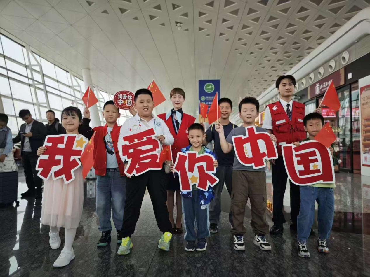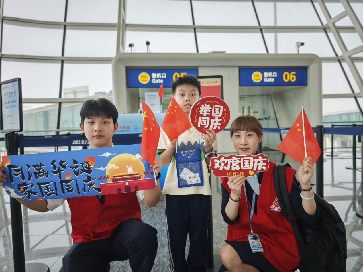 国庆节当天,东航武汉公司地服部在值机柜台、登机口开展互动活动。