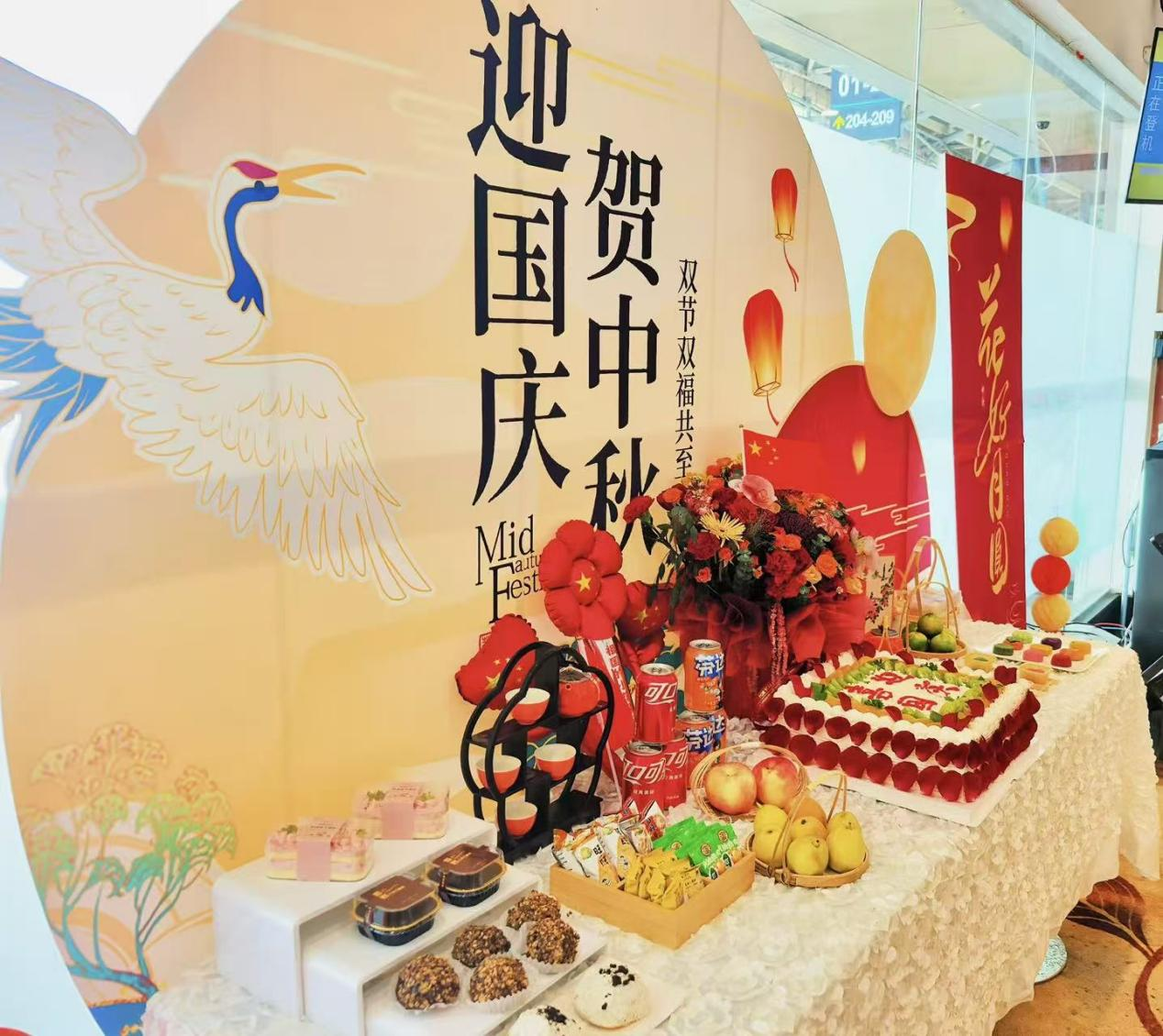 9月30日,东航江西分公司在南昌昌北国际机场T2航站楼C指廊东航贵宾厅,举办“月满华诞,家国同庆”主题庆祝活动,与八方旅客共赴一场温馨的节日之约。