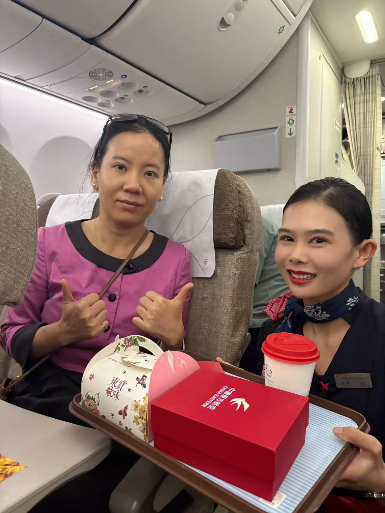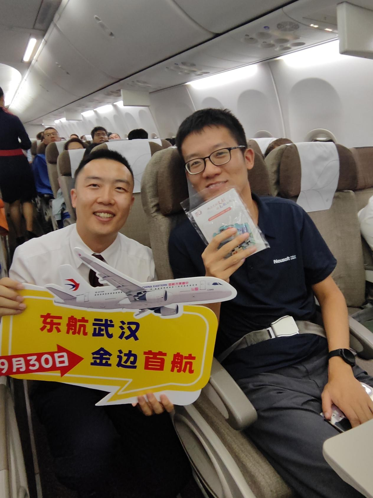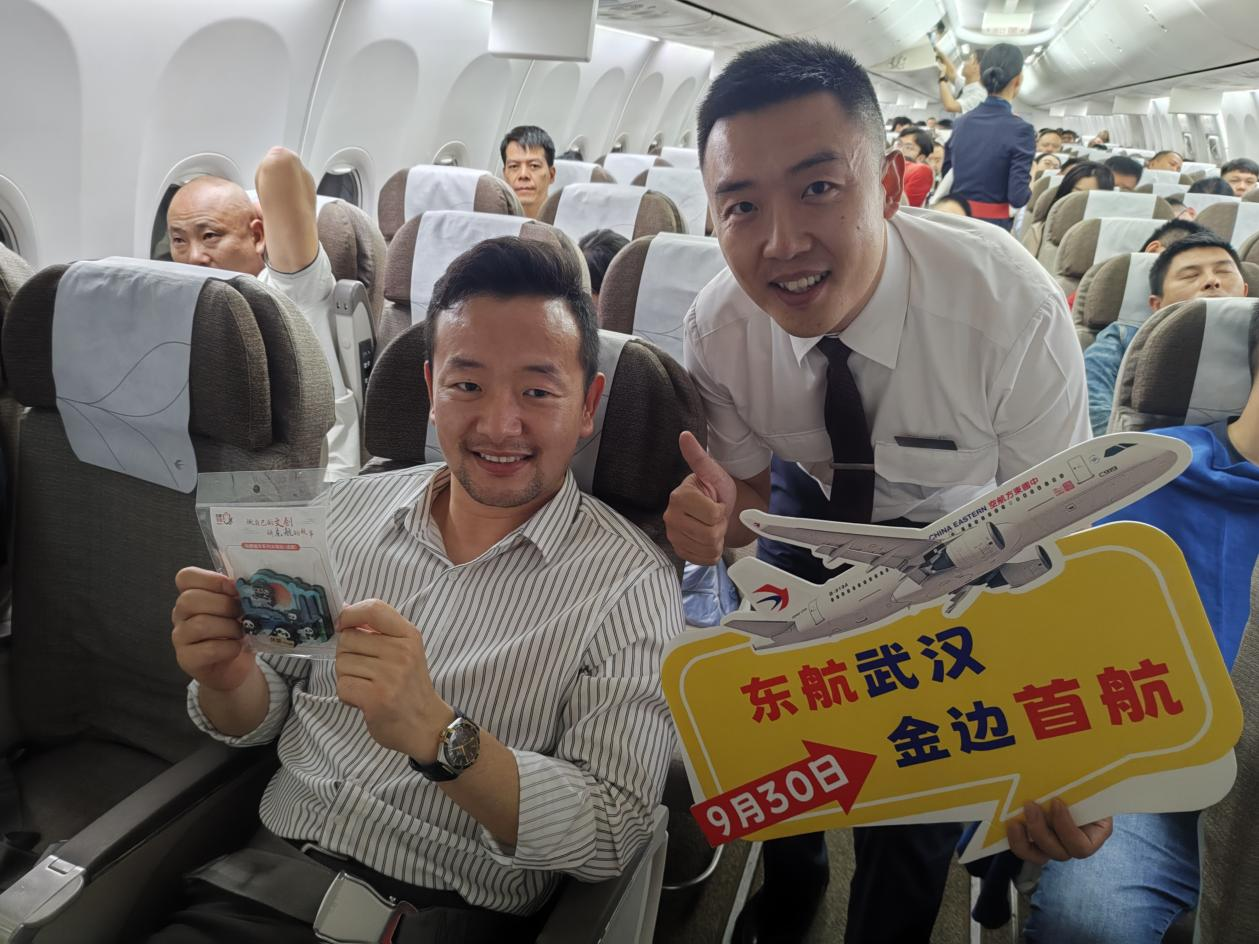 9月30日,东航武汉—金边首航,东航武汉公司乘务组特别发起与旅客互动环节,邀请旅客分享金边热门旅游景点,并为当天过生日的旅客送上特别惊喜。